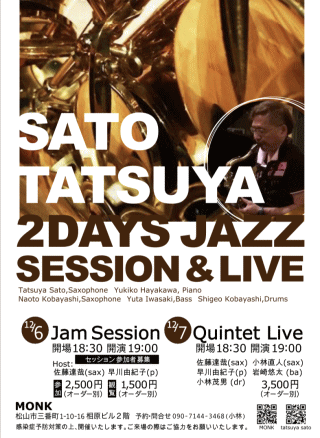 12/6(月) 佐藤達哉(ts ss)早川由紀子(pf) Jam Session