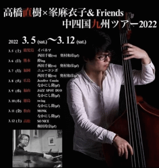 高橋直樹(b) 峯麻衣子(ds) なかにし隆(pf) 19:30 start mc \3000 |