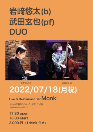 7/18(月祝) 岩﨑悠太(b) × 武田玄也(pf) DUO