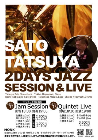 12/12(月) 13(火) 佐藤達哉(ts,ss) 早川由紀子(pf) 小林直人(ts)