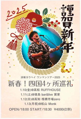 1/13(月祝) 浜端ヨウヘイ(vo,pf,ag) ワンマンツアー 2025