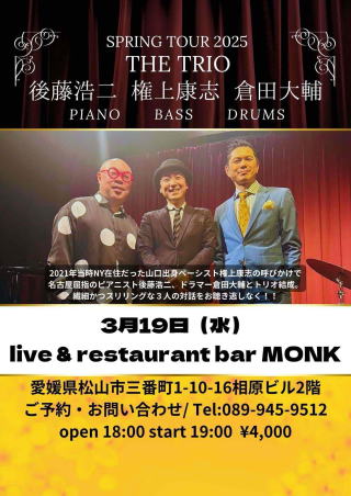 3/19(水) 倉田大輔(ds) 後藤浩二(pf) 権上康志(b)